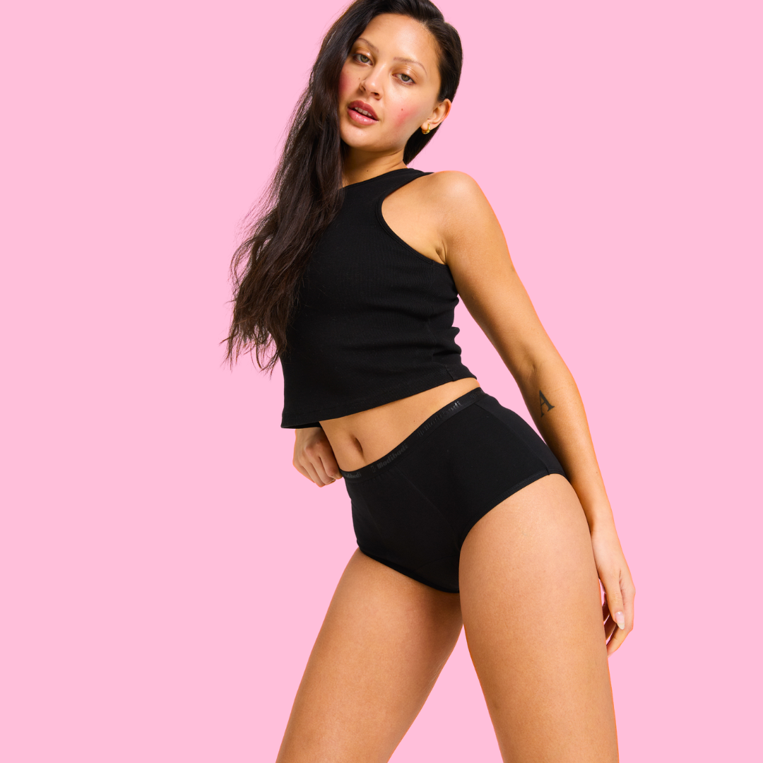 Introducing the Basic Full Brief—your perfect first step into the world of period-proof underwear. Crafted from soft, breathable organic cotton, this style offers a high waist, comfy full-brief coverage, and a low leg. With a super-overnight absorbency, you'll stay dry, comfy, and leak-free, no matter what.